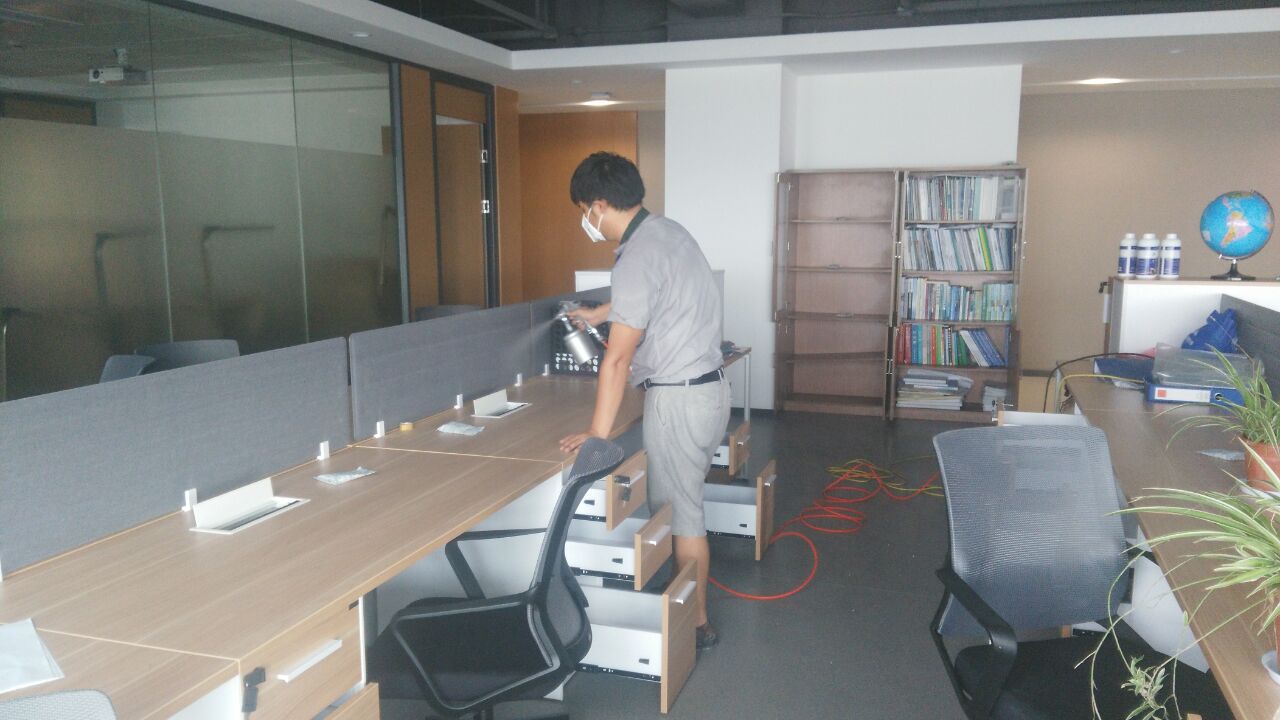針對其結構特點及污染情況,我公司技術及施工人員采用專項專治的施工方案,針對重點污染區(qū)域,重點治理,對重新粉刷的墻面使用我公司研發(fā)的利純納米光觸媒進行甲醛清除,這些地方光照量較充足,便于光觸媒對甲醛的分解,對于刷漆的辦公家具、書桌、儲物柜、木門、地板等采用甲醛清除劑進行處理,針對不同污染物,做分別處理。經(jīng)過我公司重點治理,一周后復查結果各種有害物質含量均已達到國家標準以內,各項指數(shù)均達標。客戶員工感覺氣味明顯消除,為業(yè)主清理甲醛,還顧客一個安全,健康的生活環(huán)境是我們全體工作人員的責任,下面為施工現(xiàn)場照片: